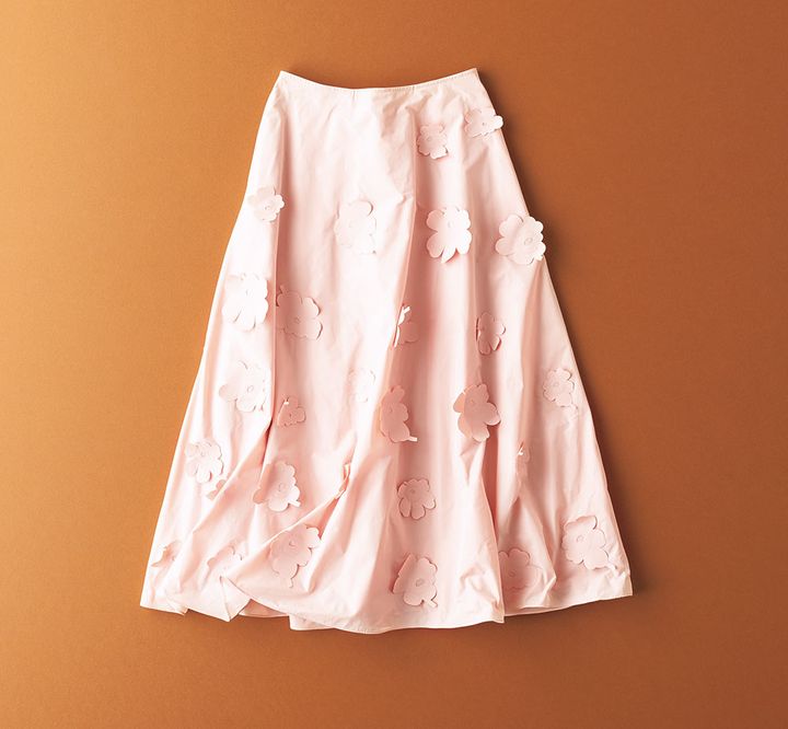 Aラインシルエットに付いた立体的な花のモチーフと柔らかな色味がフェミニンです。スカート(マリメッコ/ルック ブティック事業部)