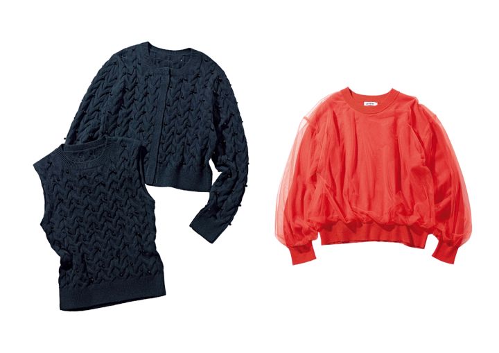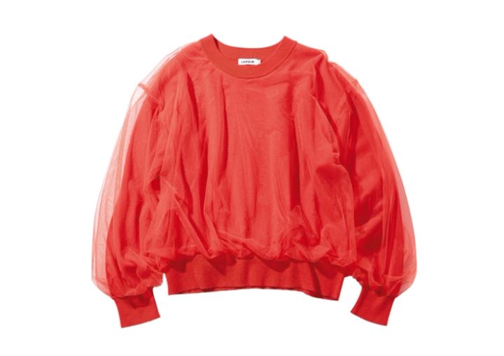エアリーな重ねチュールで赤ニットの存在感が3割増に!チュールレイヤードニット¥5,990/レプシィム(アダストリア)