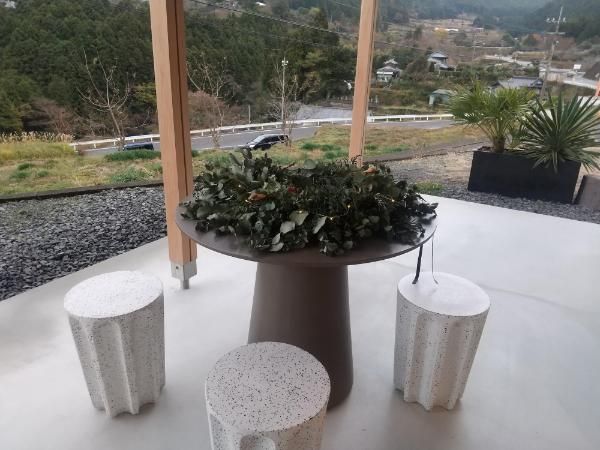 テラス席もあります。冬の寒い間はクリスマスリースが飾られていました。気の合うお友達と訪れるのも良し、ひとり時間を過ごすのも良し。様々な季節のひとときをぜひお楽しみください。