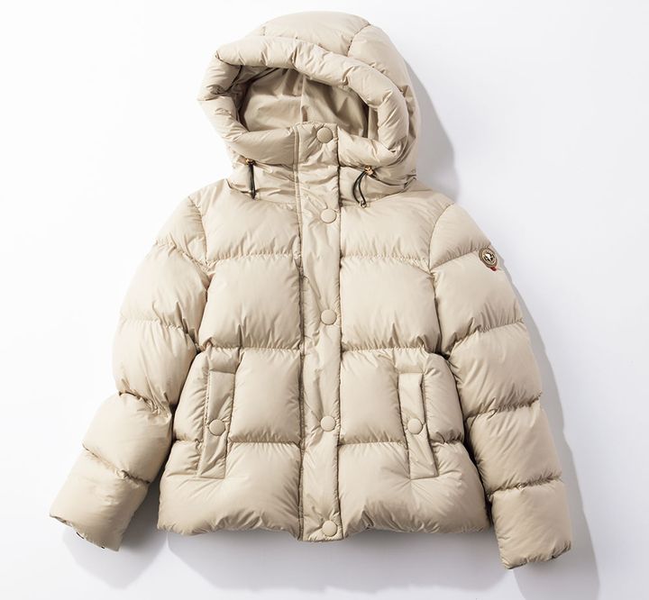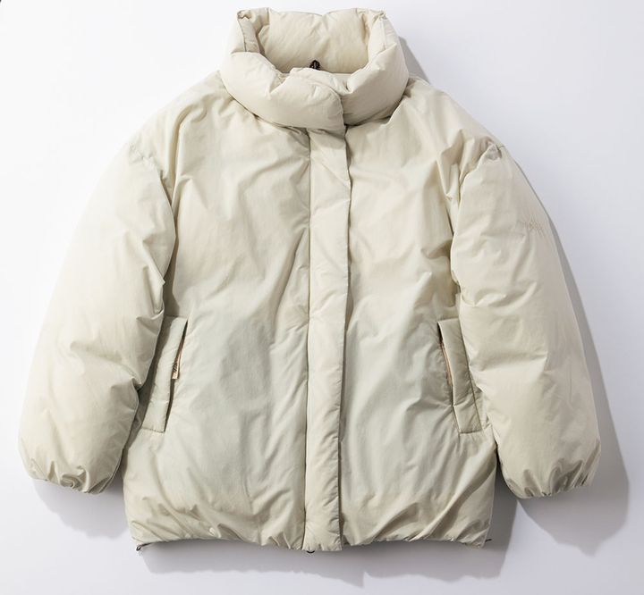 やさしげなミルクティーベージュ。ダウンジャケット¥75,900(ケープホーン/ティースクエア プレスルーム)