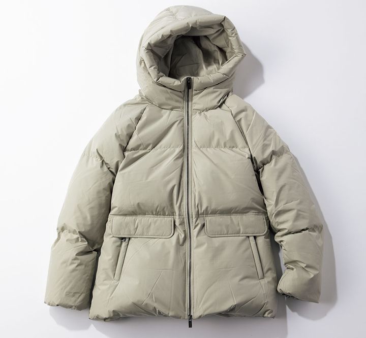 アイシーなグレーが都会的。ダウンジャケット¥104,500(ピレネックス/グリフィン インターナショナル)
