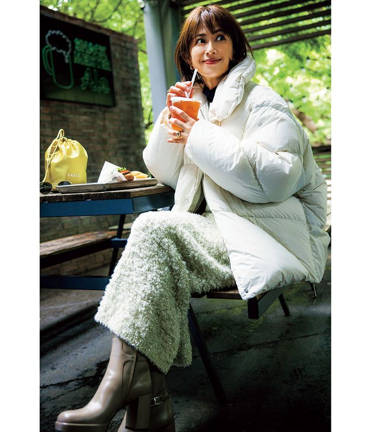 「ダウンでドレスアップ」が叶うから冬の集まりに大活躍。OFFでもラフなスタイルに羽織るだけで極上のご近所服が完成!