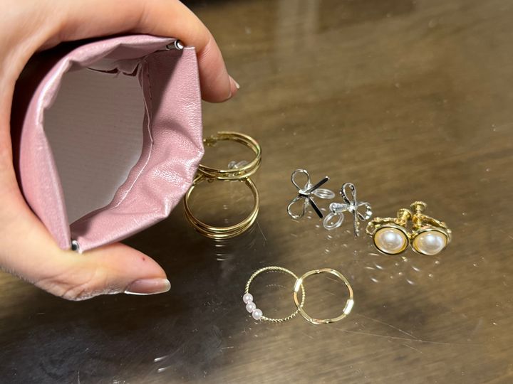 福袋の中には、イヤリング3種類・リング2種類・アクセサリーの入るポーチが一個入っていました!!