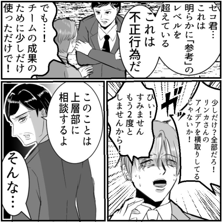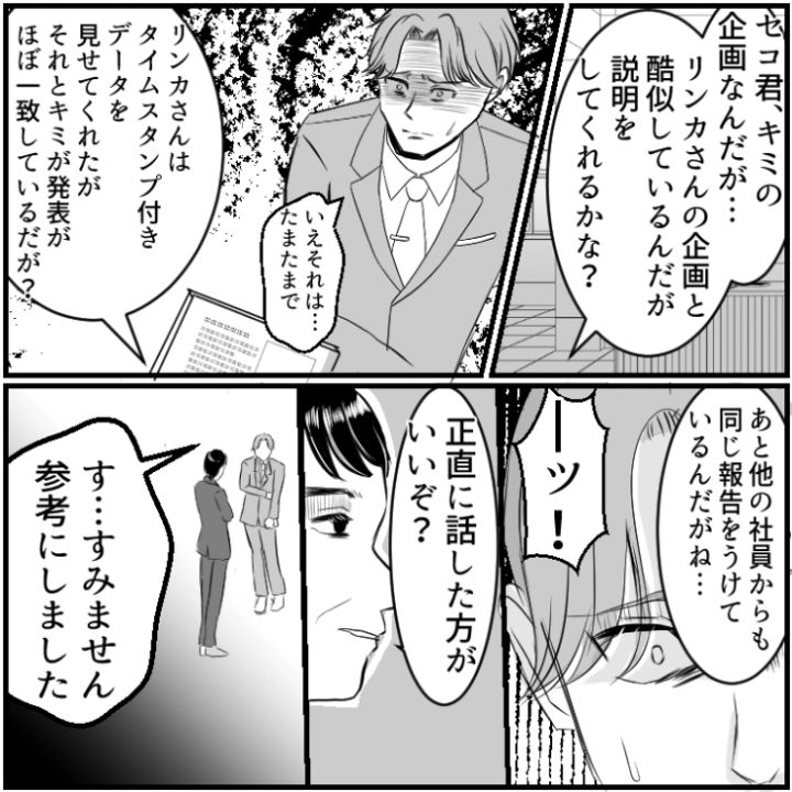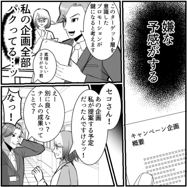 衝撃のエピソードを漫画化!今回は、毎回企画を〝参考にする〟と言いながら丸パクリする先輩に悩まされている主人公のお話をご紹介します。