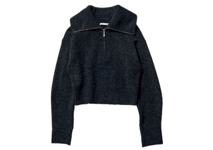 スポーティな印象が強いジップアップタイプのニットこそ、実は着こなしの幅が広い優秀アイテム。同じニットのイメージを変えるコーデ術は注目!グレービッグカラーハーフジップニット¥2,990/GU