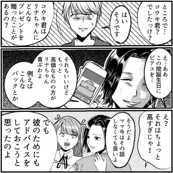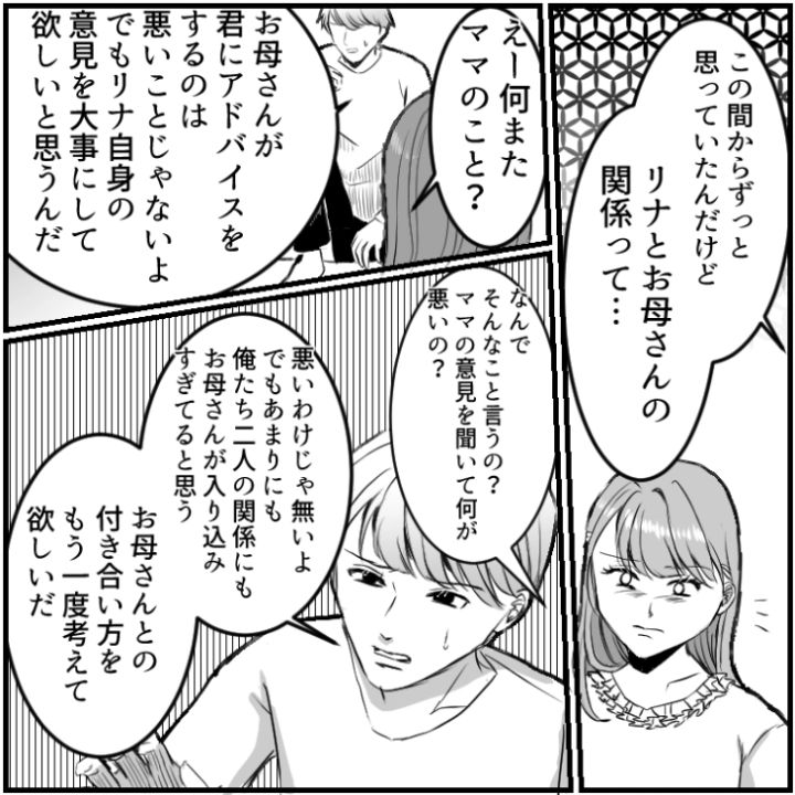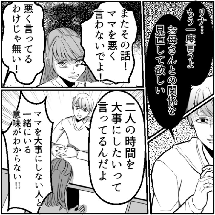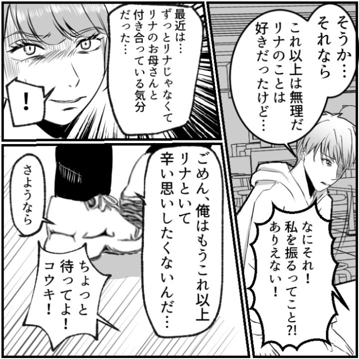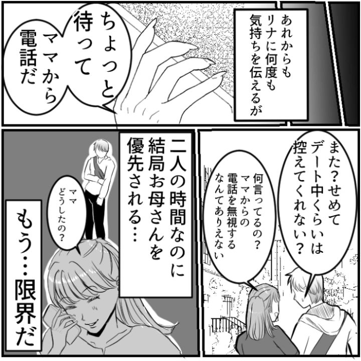 やめてほしいと伝えてもなお、母親を優先するリナ。ついにコウキも我慢の限界に達し別れることを決意。大人になっても何も自分で決められない人とは付き合っていくのが難しそうですね・・・。