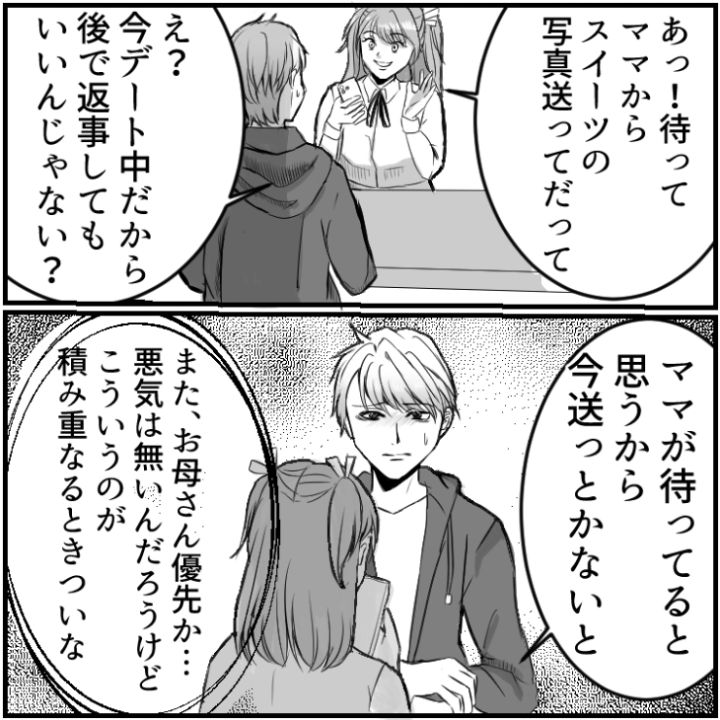 3. 「ママがこれにしろって言うからこれ」何事も母親の意見を優先する親子共依存の彼女!デートにも勝手についてくるのでやめてと言った結果・・・