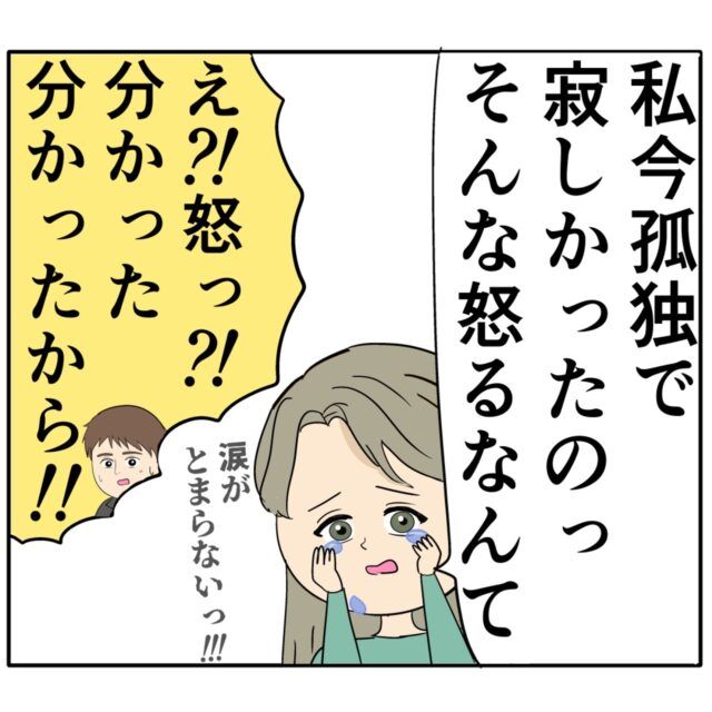 「私いま孤独で寂しかったのっ。そんな怒るなんて」と涙が止まらないジュリ実さんの様子に「え?!怒った?!分かった、分かったから!!」とろみ緒さんはうろたえます。