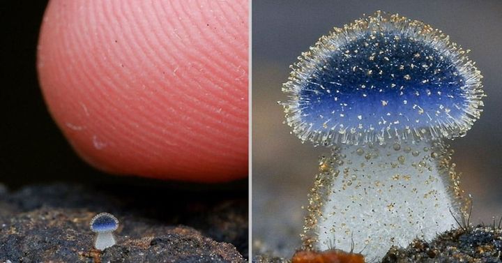 青いキノコの高さはわずか1mmしかなく、これは世界で最も小さなキノコの一つとなっています。