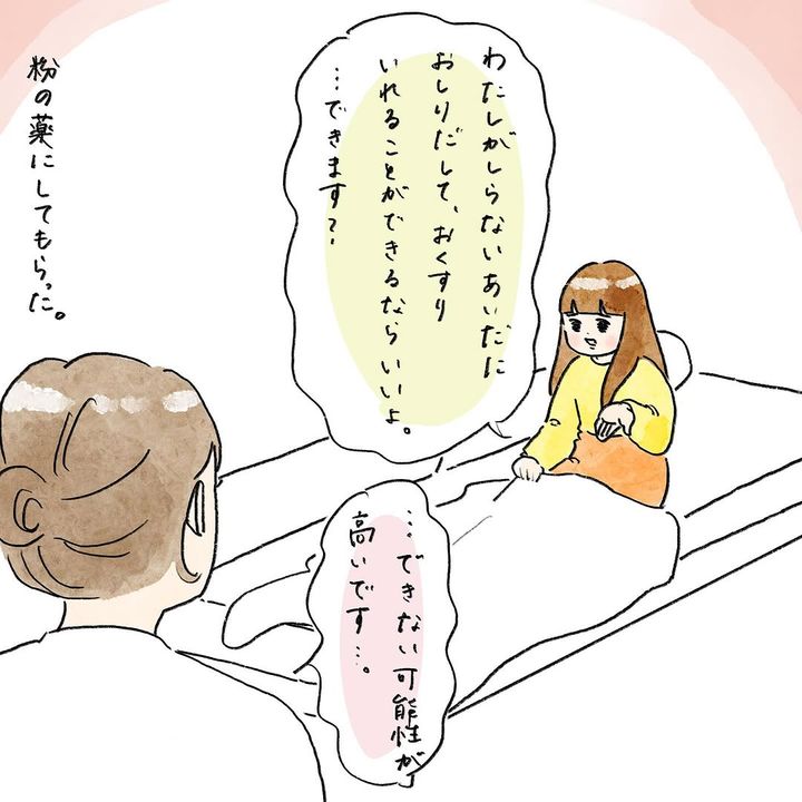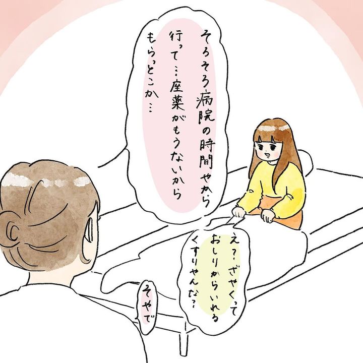 熱を出した娘さんに、「座薬がもうないからもらっとこか…」とnaoさん。座薬が嫌だった娘さんは、「わたしがしらないあいだにおしりだして、おくすりいれることができるならいいよ。…できます?」と返すのでした。