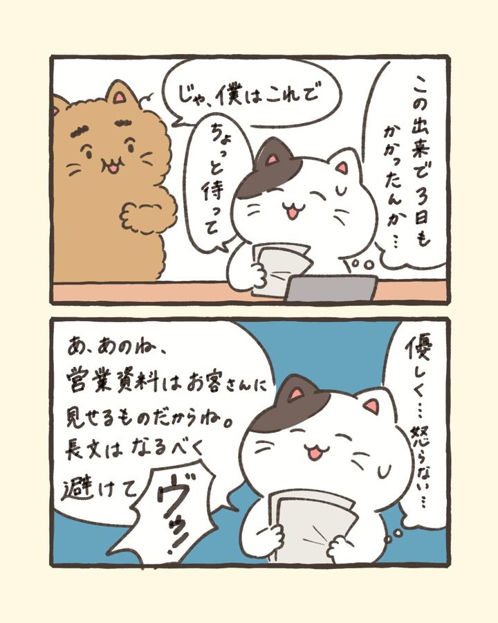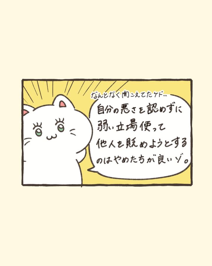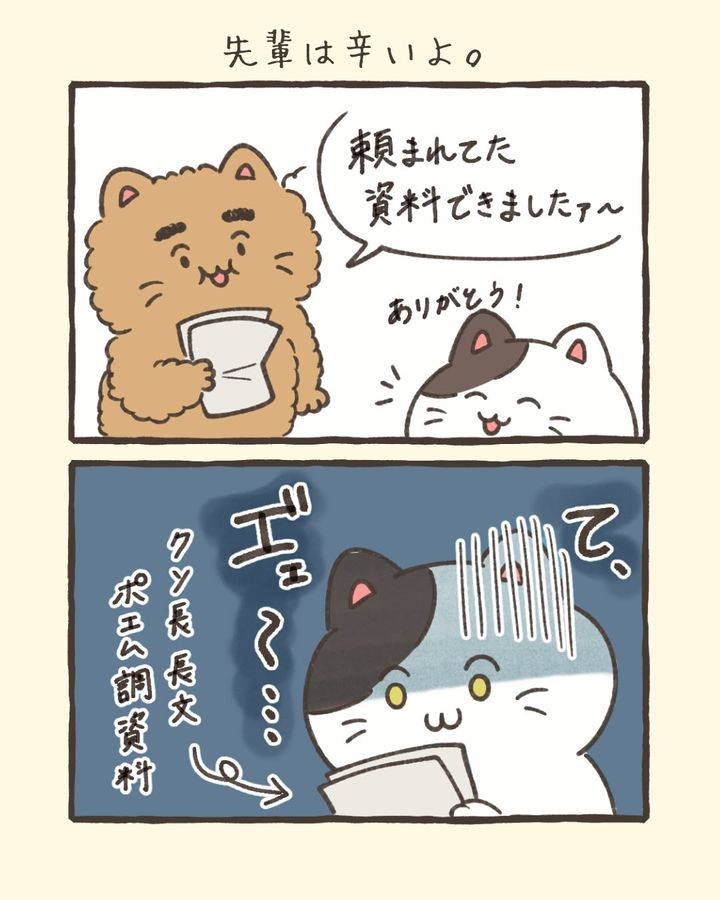 作成した資料のクオリティが低かったことを棚に上げて、パワハラを訴えかけるのはよくありませんよね。そんな後輩社員に対して、「自分の悪さを認めずに弱い立場を使って他人を貶めようとするのはやめた方が良いゾ」と、毅然と対応するぬんちゃんが素敵です。