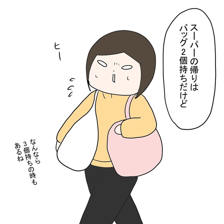 「バッグ2個持ち」がトレンドのようですが、「自分は絶対置き忘れるな」と塩田さん。スーパーマーケットからの帰り道では、意図せずバッグの2個持ちになっているようです。