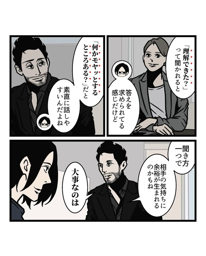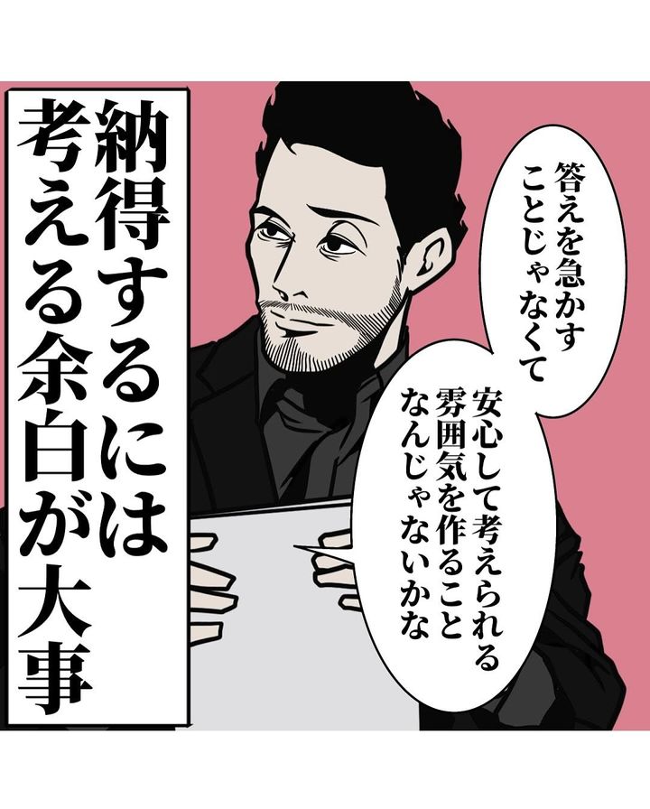 契約手続き中に、「ご理解いただけましたでしょうか?」と聞かれたB.B軍曹さん。これに対して、髭さんは、「何かモヤッとするところある?」という聞き方をしてくれるのでした。
