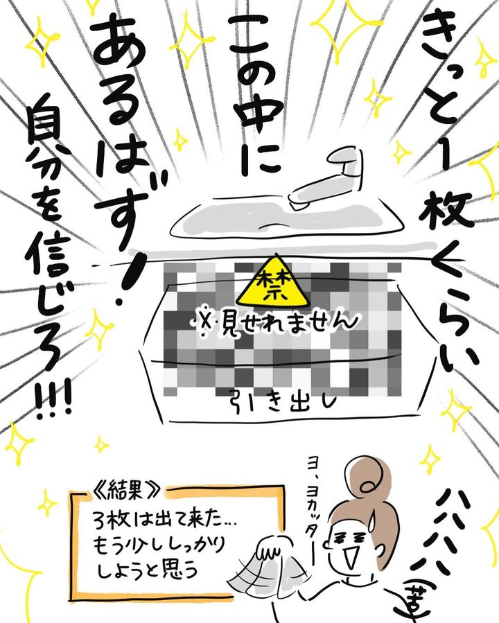 「※見せられません」と、引き出しにモザイクをかけている描写が面白く、大笑いしてしまいました。「わかるわかる」と、まいこさんに共感した読者も多いのではないでしょうか?