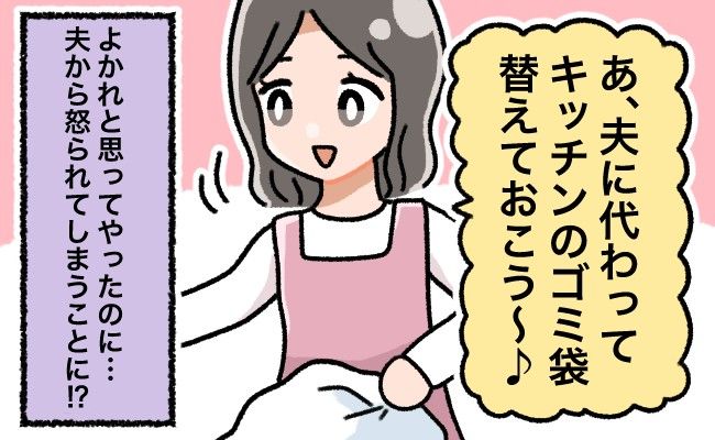 夫に代わってキッチンのゴミ袋を交換したら…夫から怒られてしまうことに。なぜ?