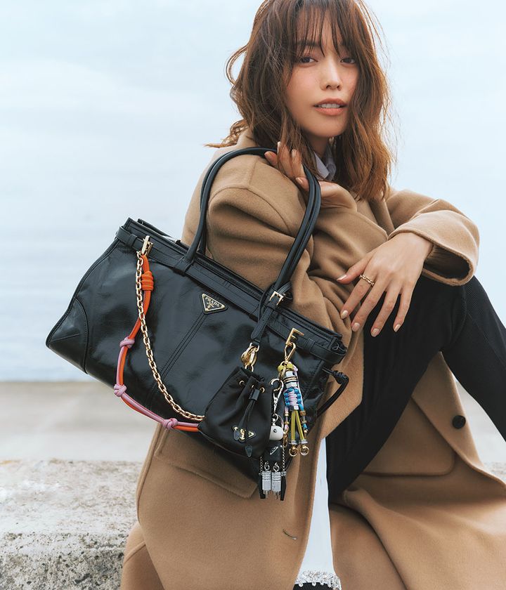 バッグ[H24×W38×D12㎝]¥462,000巾着チャーム「プラダ Re-Edition 1978」¥99,000その他チャームすべて「プラダ トリック」〈レザーコード(オレンジ×パープル)〉¥125,400〈ロボット〉¥85,800コート¥847,000シャツ¥616,000リング¥500,500※すべて予定価格(すべてプラダ/プラダ クライアントサービス)