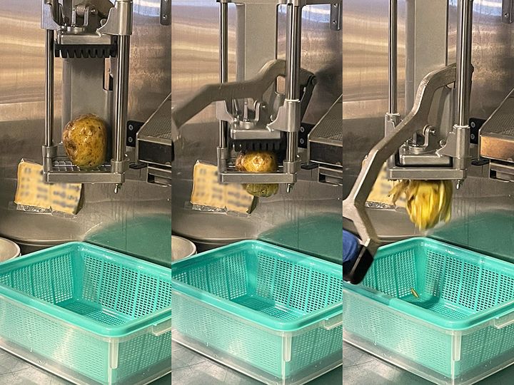 丸いじゃがいもが一瞬で細長くカットされる様子から、目が離せません!