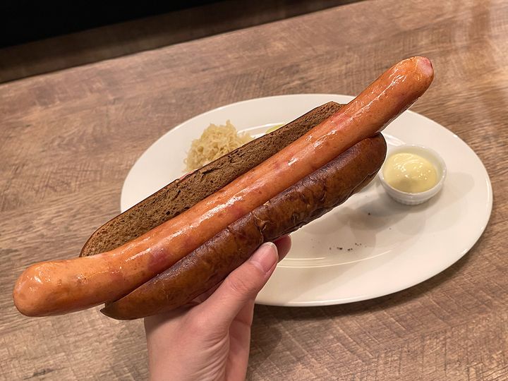 ほろ苦いパンがソーセージのうま味を引き立て、シンプルなのに味わい深い満足感のある一品。ひと口かじるとじゅわっと肉汁があふれ出るソーセージもたまりません。