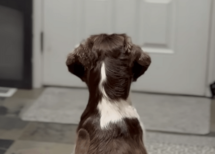 玄関前から一歩も動かない! お父さんの帰りを待つ犬さん