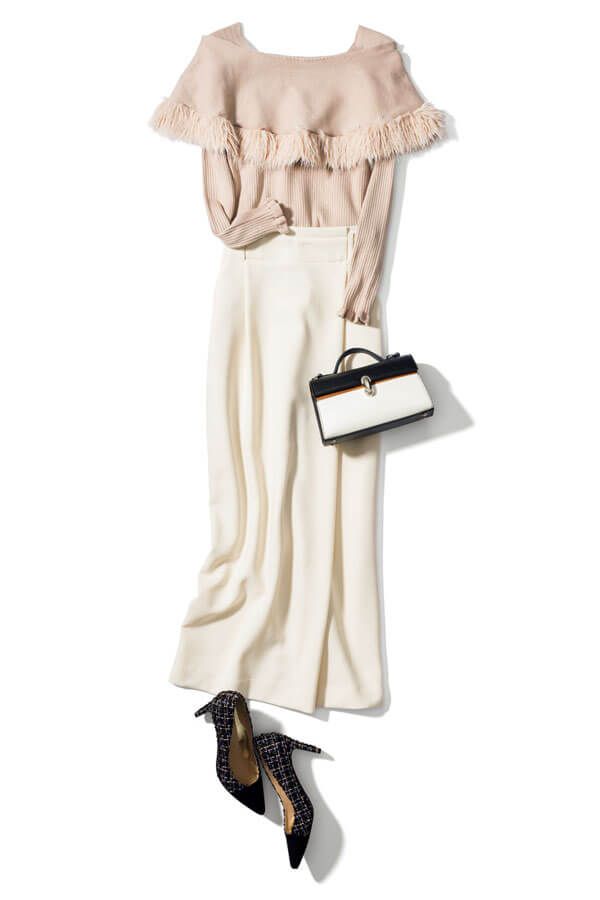 装いに新しい風を取り入れて、マンネリ気味の彼との関係をアプデ。トレンドのファーケープニットをおなじみのフレアスカートからタイトスカート合わせへとシフトチェンジして、普段とはひと味違うちょっぴり辛口のフェミニンスタイルで、彼の心を掴んで♡