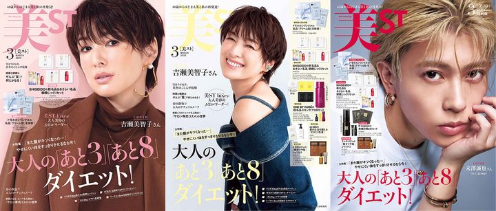 1月17日(金)発売・美ST3月号の表紙解禁です!本誌・増刊版は吉瀬美智子さん、特別版は末澤誠也さん(Aぇ! group)が初表紙を飾ります!付録には、共通付録でドモホルンリンクルの名品クリーム&SHISEIDOの朝晩じっくりセットを。増刊版はONE BY KOSÉの超名品スキンケア3点セットとdr365のビタミン乳液、特別版にはN organic Vieの乾燥対策2点セットが付録に。増刊版・特別版にはさらにエレクトロンの「魅せツヤ髪」シャントリがつく豪華仕様です!お楽しみに!
