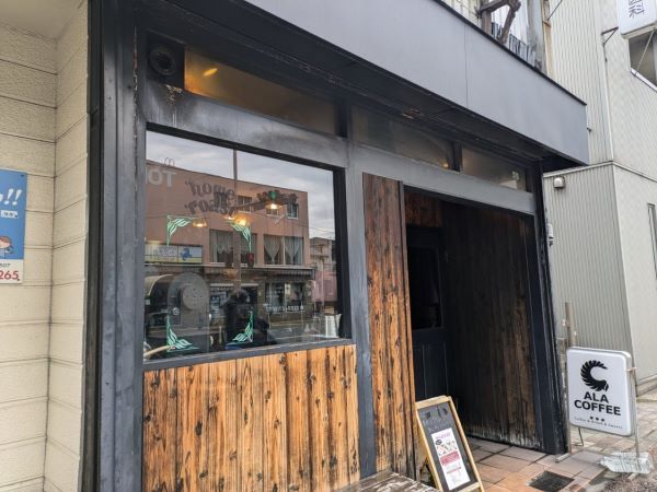場所は福岡市地下鉄七隈線別府駅3番出⼝からすぐ。国道202号線沿いにある「ALACOFFEE」(アラコーヒー)というお店です。小窓から中の様子がうかがえるのですが、通る度に素敵なお店だなと思っていました。