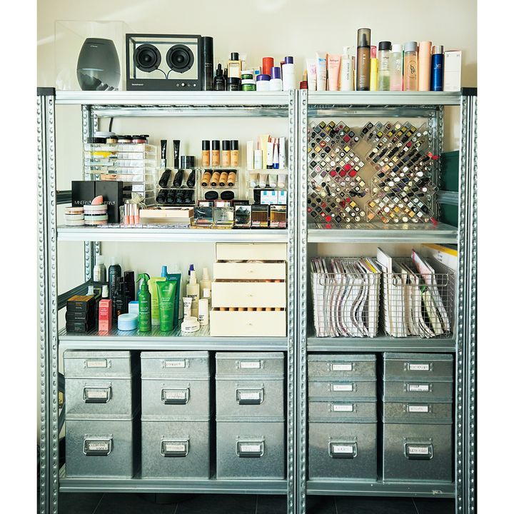 人気ヘアメイクさんがコスメを管理する“美の現場”に潜入! 日々膨大な量のコスメを仕事道具としているだけに、パッと見やすく取り出しやすい工夫が満載。無印、ニトリ、ダイソーなどのアイテムを活用した収納術は思わずマネしたくなるはず。