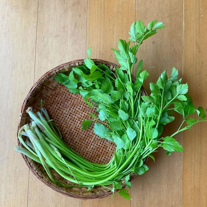 せりは、山野に自生するセリ科の多年草。シャキシャキとした食感と独特の爽やかな香り、根っこの甘くほろ苦い風味が特徴です。