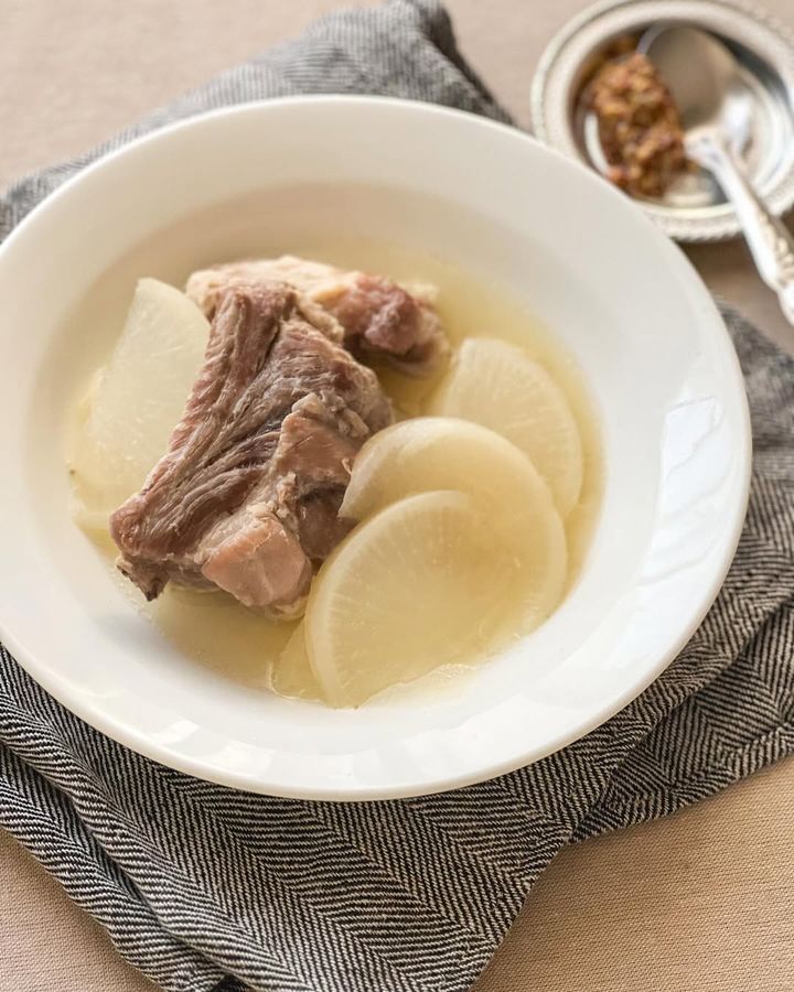 塩をすり込んだスペアリブを一晩~3日程寝かせてから、鍋にスペアリブ、乱切りにした大根とかぶるくらいの水を入れ、中火にかけます。