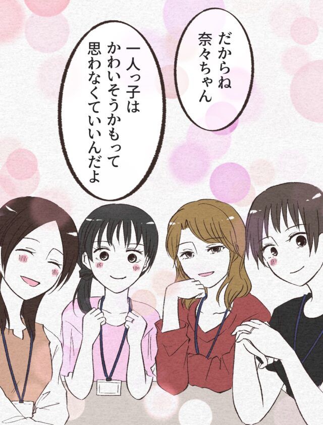 そして、「だからね、奈々ちゃん、『一人っ子はかわいそうかも』って思わなくていいんだよ」と全員が口を揃えて言いました。