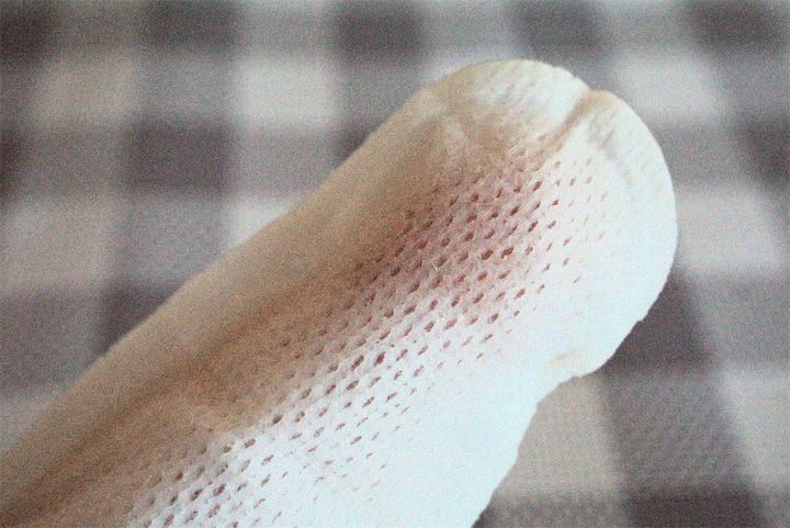 シートは人差し指よりかなり長いので、磨くとき指が直接口腔内に触れることはありません。