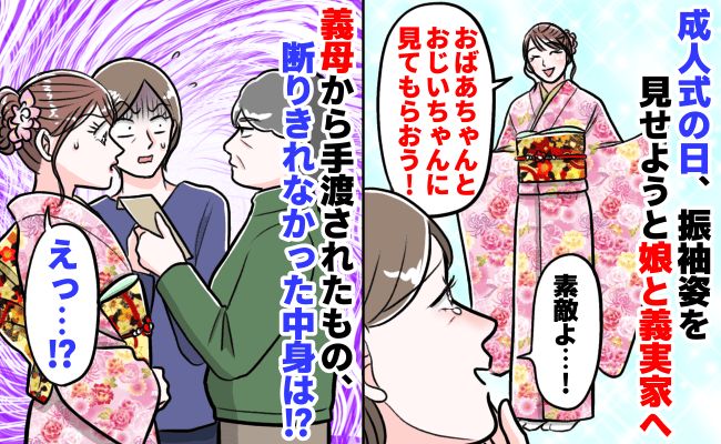 「えっ…」成人式の日、振袖姿を見せに義実家へ。義母から渡されたものに衝撃!断りきれなかった中身は
