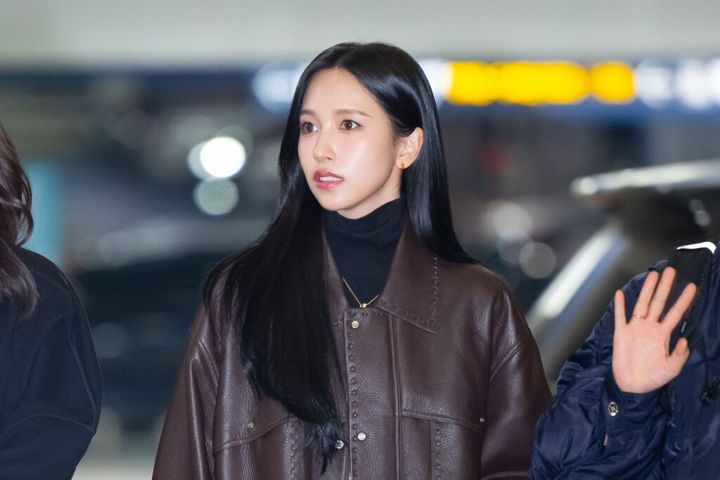 【TWICE ミナ】レザージャケット×シアータイツでこなれ感を♡冬の最新空港ファッション