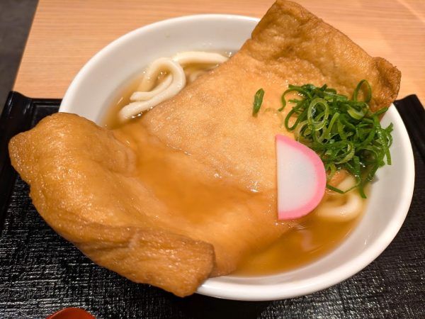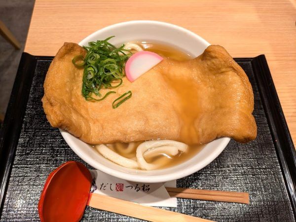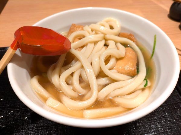 化学調味料無添加の天然出汁、弾力のあるうどん、大きくて厚い油揚げ!