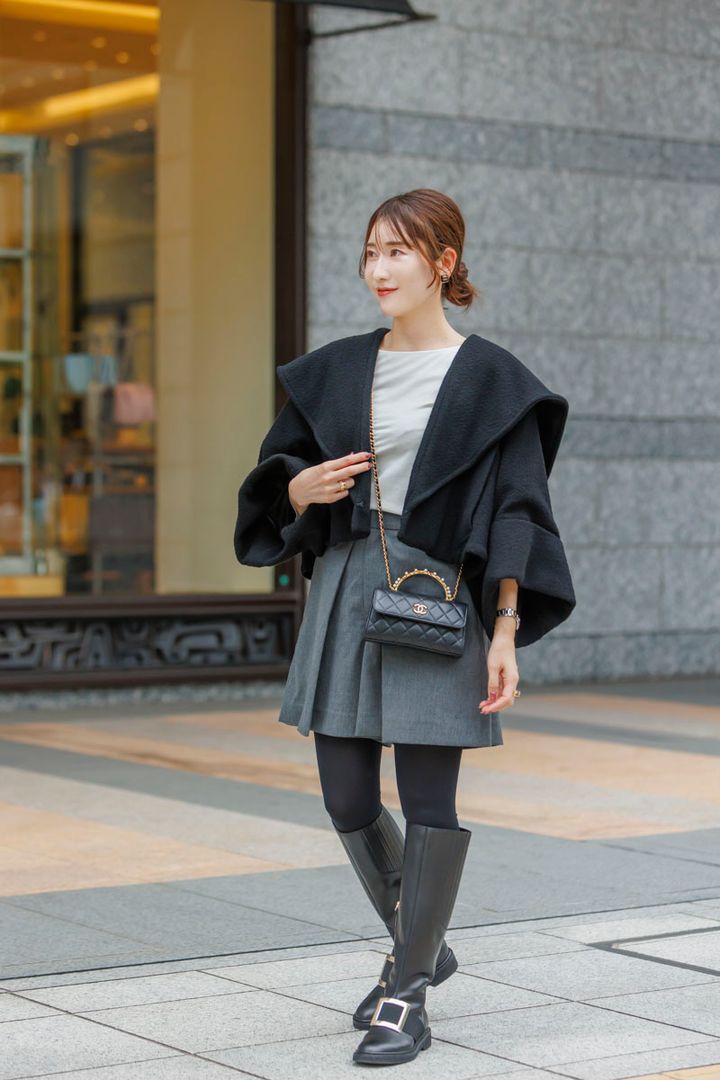 small leather goods/CHANEL coat・pants /cygne tops/BLUELEA pants /cygne boots/Roger Vivier