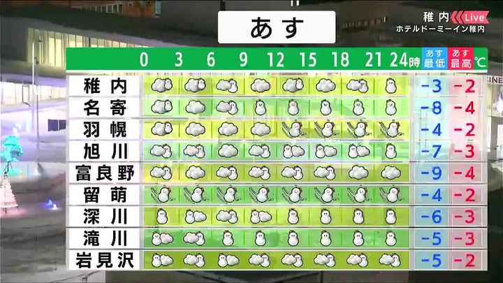 木曜日も道北を中心に雪や風が強まるでしょう。金曜から土曜日は札幌や小樽、オホーツク海側でまとまった雪になるおそれがあります。週末にかけて朝晩の冷え込みが強まりそうです。