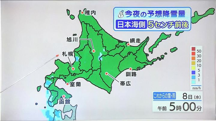 ※7日午後5時時点の情報です。最新の気象情報は、HBCウェザーセンターのホームページなどでご確認ください。HBCは気象庁の認可を2001年に得て以来、民間気象会社の一つとして「HBCの独自予報」を発信しています。
