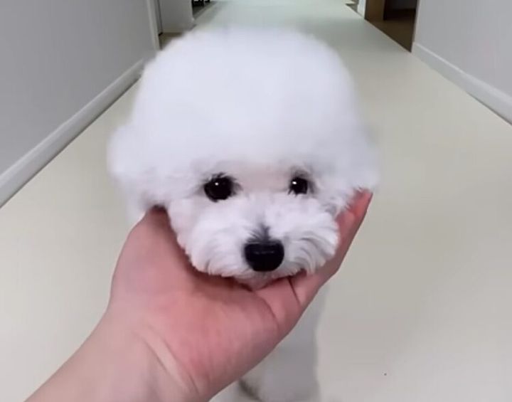 3. ふわふわな犬さんがポスン♡ 可愛い特技を披露してくれたよ