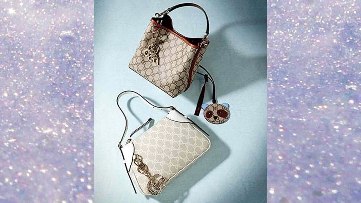 「GGエンブレム」ハンドバッグ(16×24.5×5㎝)289,300円、ダブルGキーチャーム 88,000円/ともにグッチ(グッチ クライアントサービス)