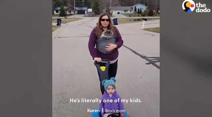 赤ちゃんのように抱っこしてもらいお散歩を楽しんでいるのは、ネコの『ビンクス』。 飼い主さんは、この子のことを「文字通り我が子のひとりです」といいます。