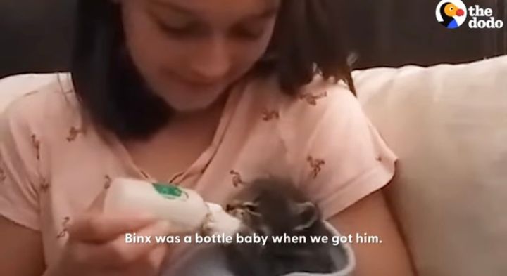 子猫の頃のビンクスは、哺乳瓶でミルクをもらい・・・