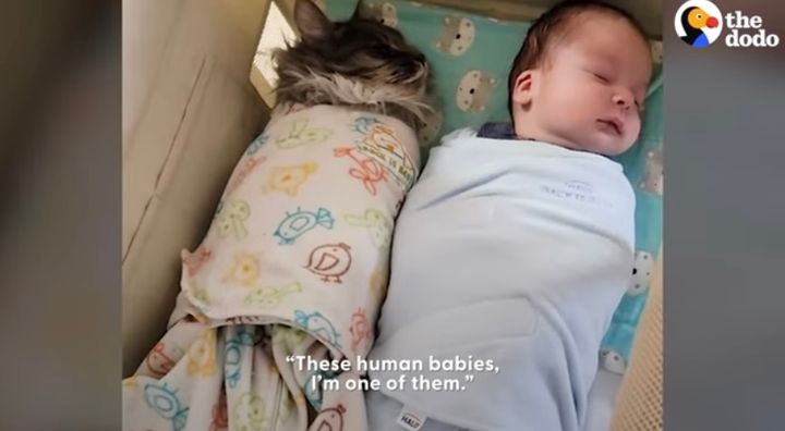 もうひとりの赤ちゃんのように振る舞うネコ。 愛らしいその姿は、こちらの動画からご覧いただけます。