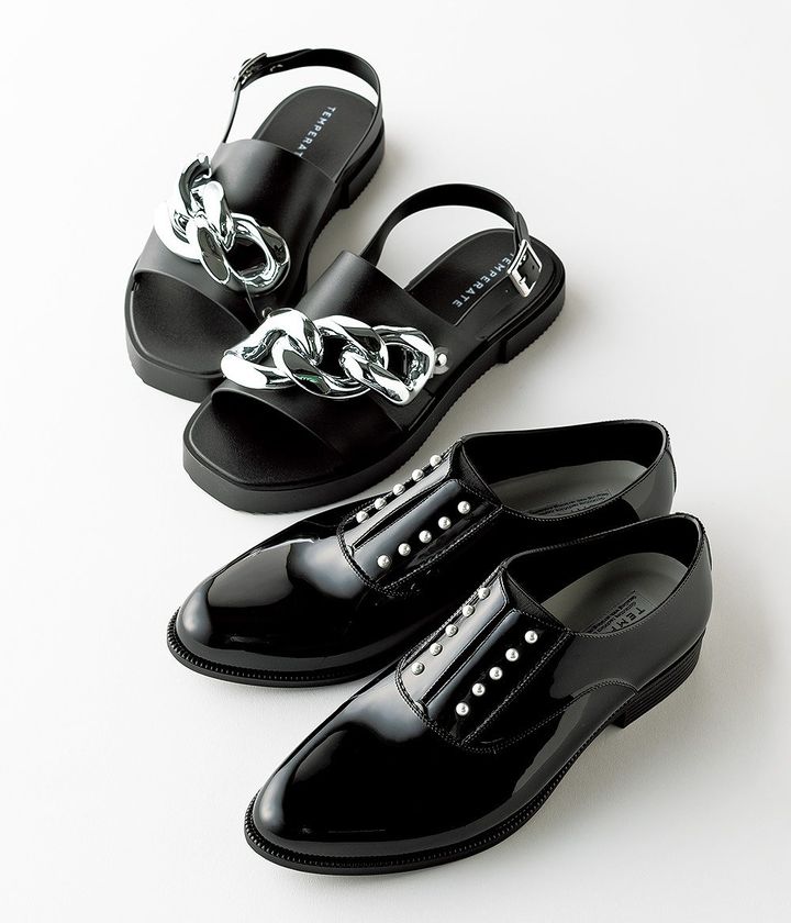 サンダル¥8,250フラットシューズ¥8,140(ともにテンパレイト/シックスティーフォー)撮影/佐藤 彩 ※情報は2024年6月号掲載時のものです。