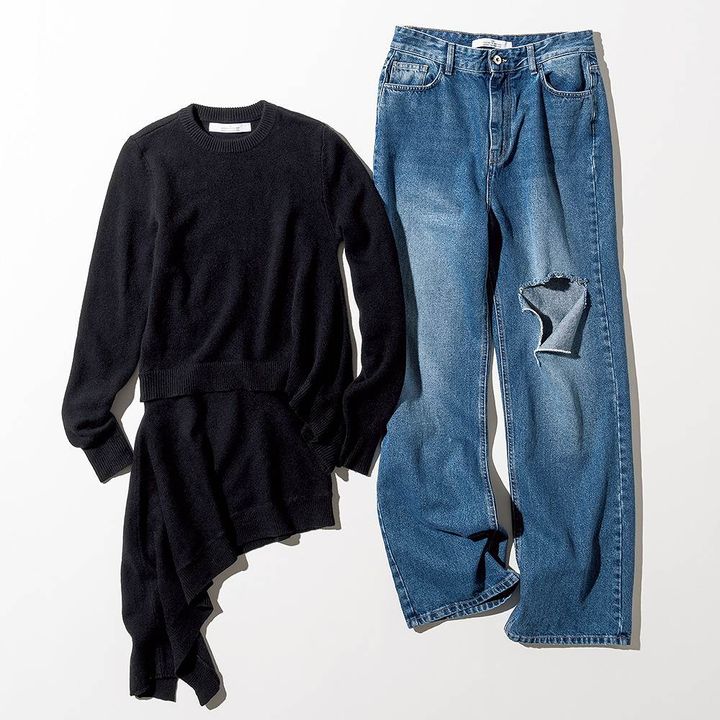 ニットドレス¥71,500デニムパンツ¥66,000(ともにロク/リステア)撮影/佐藤 彩 ※情報は2024年12月号掲載時のものです。