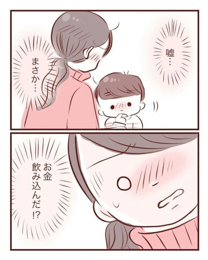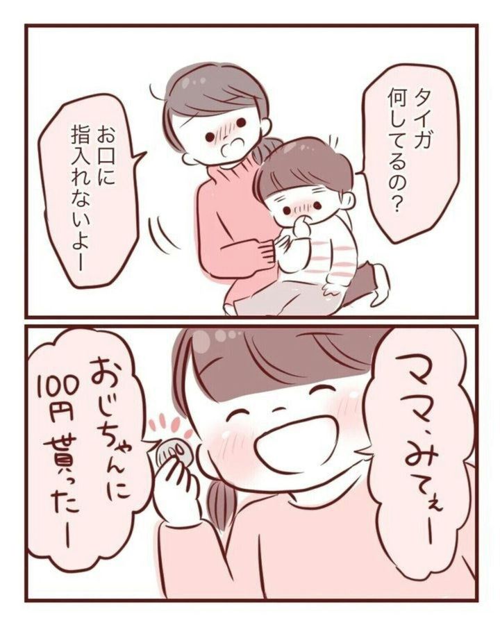 この日はフォロワーさんの弟さんが遊びに来ていまた。人見知りだった子どもたちとも仲良くなり、弟さんは100円を2人にあげます。タイガくんが、お金を飲み込んだのではないと心配するフォロワーさん。その後、部屋を探し回ったところ、100円玉が落ちているのを発見。誤飲の可能性はなくなったように思えたのですが…。