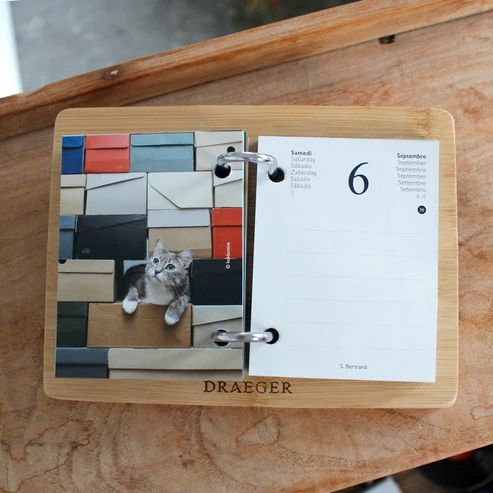 フランス・パリの「DRAEGER PARIS」という雑貨ブランドのもので、台座付きの素晴らしいルックスながら値段は¥2,970(税込)とリーズナブル。海外産のものなのに、日本の祝日を管理できるシールが付いているのも嬉しいポイント。