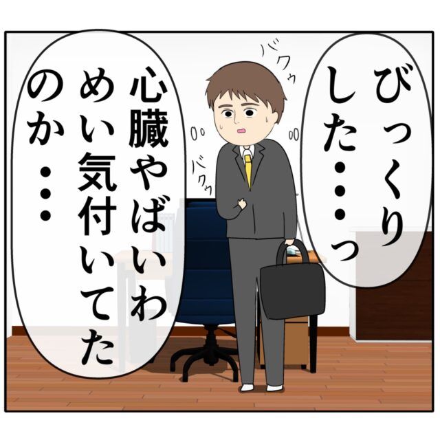 めいさんと話した後、自分の部屋へ行ったろみ緒さんは「びっくりした・・・っ。心臓やばいわ。めい気付いてたのか・・・」と焦って心臓がバクバクしていました。