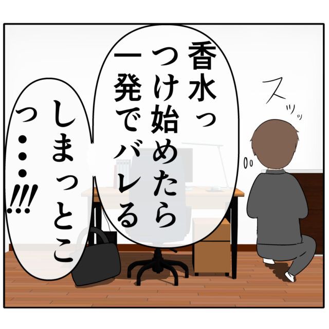 そして、さきほどジュリ実さんからもらった誕生日プレゼントの香水を鞄から出し「香水っ、つけ始めたら一発でバレる。しまっとこっ・・・!!!」とそっと引き出しにしまいました。