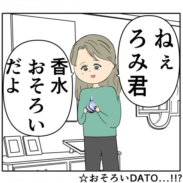 その頃、ジュリ実さんは自宅で「ねぇろみ君、香水おそろいだよ」とろみ緒さんにプレゼントしたものと同じ香水を握りしめて微笑んでいました。