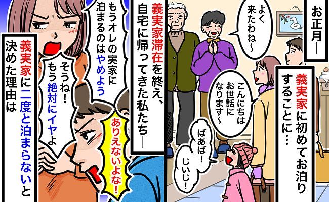 「ありえない!」お正月に初めて子連れで義実家へ…。帰宅後、私たち夫婦が二度と義実家には泊まらないと決めた理由は